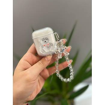 • Airpods Kılıf 2.Nesil Uyumlu Sevimli Ayıcıklı Boncuk Askılı Koruyucu Kılıf