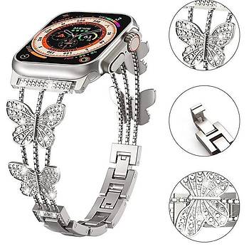 Apple Watch Seri 2/3/4/5/6/7/8/9/se 42 44 45 49mm Uyumlu Metal Ayarlanabilir Kelebekli Kordon